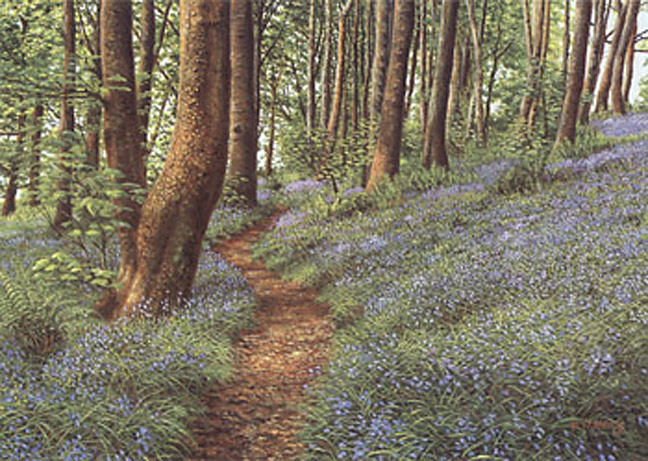 Bluebells, Haslost Wood II from a gouache painting Artist: Keith Melling Signed Limited Edition of 350 Giglee print 8.5 x 12 in